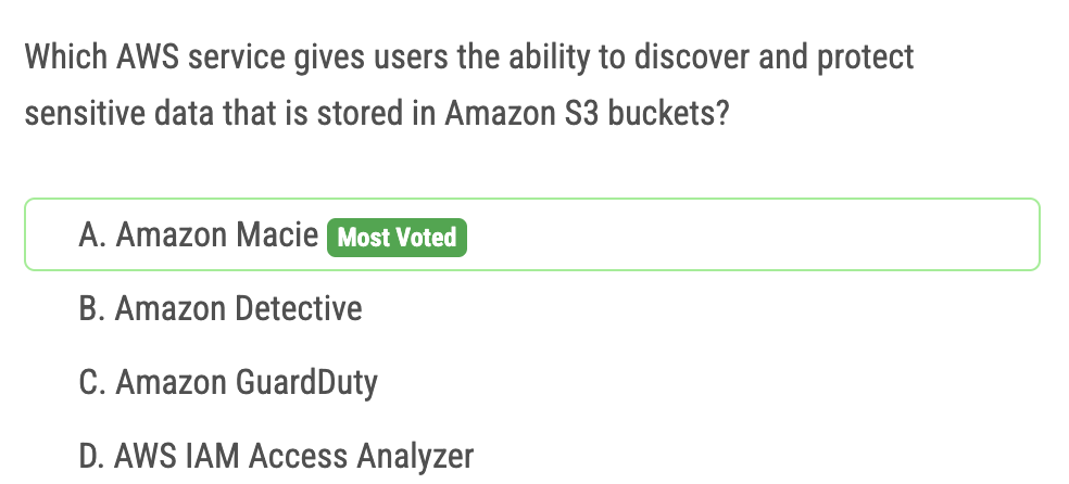 58 Amazon Macie: κΈ°κ³ νμ΅μ μ¬μ©νμ¬ Amazon S3μμ κ°μΈ μλ³ μ 보(PII)μ κ°μ λ―Όκ°ν λ°μ΄ν°λ₯Ό μλμΌλ‘ κ²μ, λΆλ₯ λ° λ³΄νΈνλ 보μ μλΉμ€